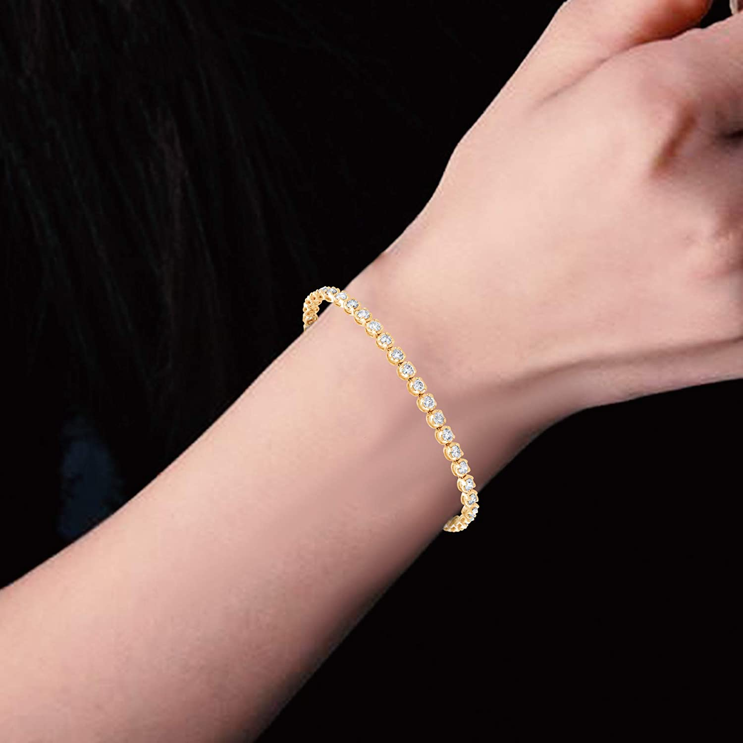 TJD Women's IGI Certified 3.5 Carat Natural Diamond Bracelet in 14K Yellow Gold (G-H Colors, I1-I2 Clarity) Classic Diamond Tennis Bracelet Diamond Jewelry Gift