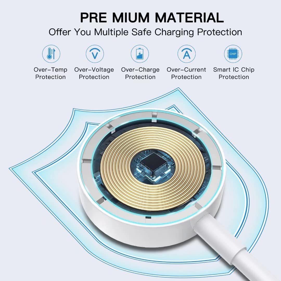 • 【Intelligent Protection &Reliable Quality】Unlike similar products on the market, Our Magnetic Charging Cable better solved the issue of "hot/not charging/slowly".Our watch charger has passed the most advanced certification, which can provide your devices with intelligent short-circuit protection, over-current protection, over-voltage protection, over-charge protection and high-temperature protection, and allowing you to have a safer charging experience.